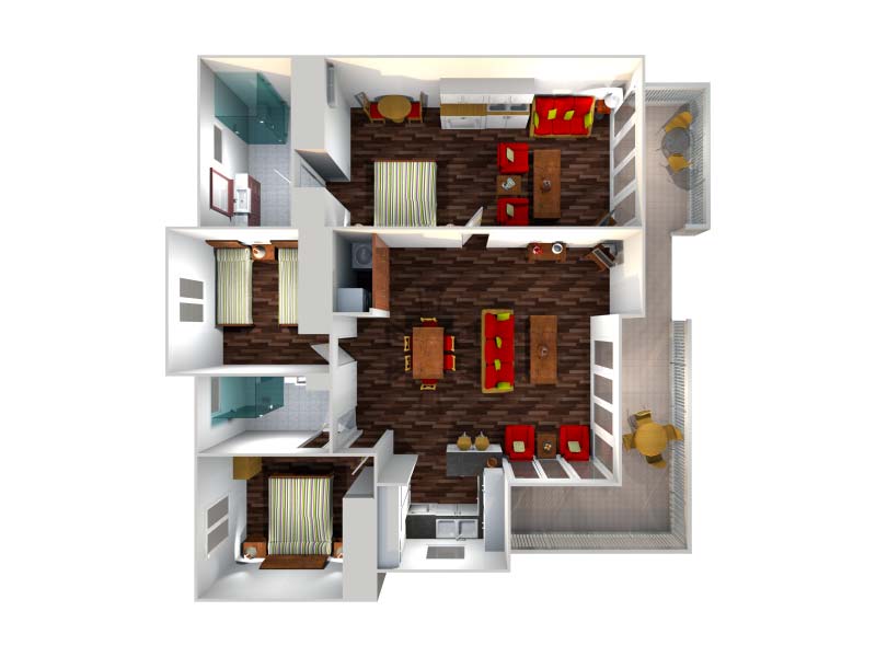 3 Bedroom Apartment Features: